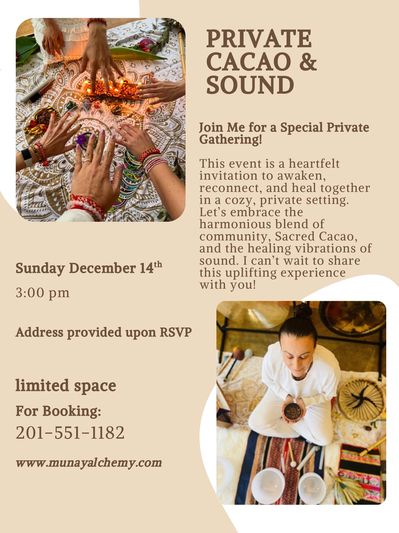 You’re lovingly invited to a sacred space where we will awaken and reconnect together. Immerse yourself in the warm embrace of Sacred Cacao, allowing its transformative energy to open your heart. Feel the uplifting vibrations of sound as we create a harmonious community experience.
